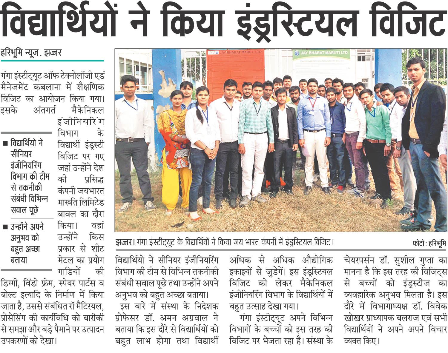 Campus Placement Drive for B.Tech.(Mech) students by Jai Bharat Maruti, Gurgaon on 05 january, 2016 (For GITAM Students only)