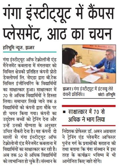 Campus Placement Drive by Vansh Constructions for B.Tech and Diploma Civil students on 28/12/19.