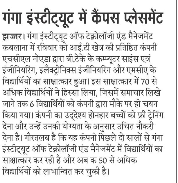 Campus Placement Drive for B.Tech(CSE)/BCA/MCA Students by Ojas Info Tech. Pvt. Ltd., Rohtak on 07 May, 2016.