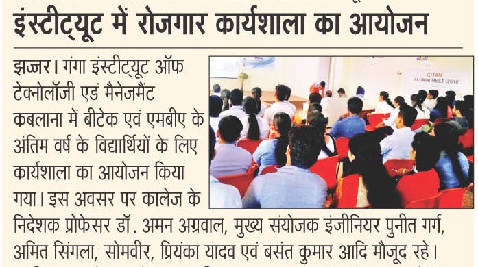 Campus Placement Drive for B.Tech(ECE & EE), BBA,MBA Students by Genius Tele Service Pvt. Ltd., Mohali on 5th Aug.,2015