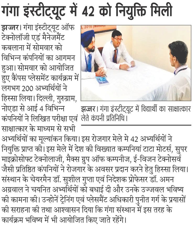 Campus Placement Drive for B.Tech(CSE/ECE), BCA, MCA students by Super Microsoft Technologies Pvt. Ltd., Noida on 10th October, 2016