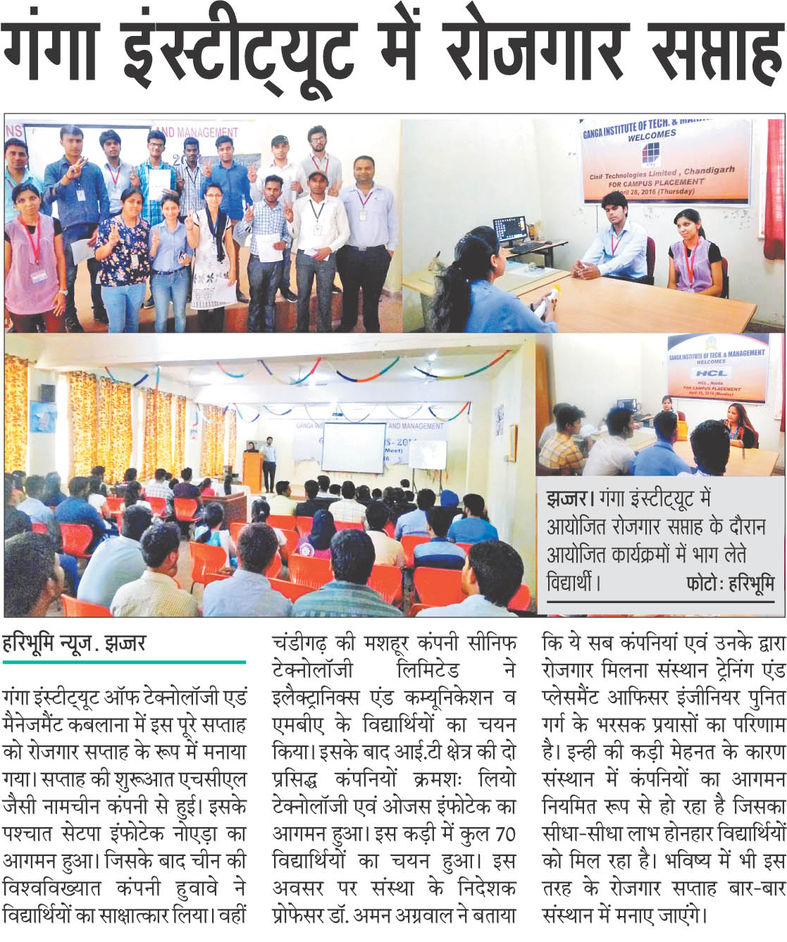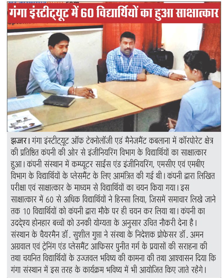 Campus Placement Drive for B.Tech(CSE)/BCA/MCA Students by Ojas Info Tech. Pvt. Ltd., Rohtak on 07 May, 2016.