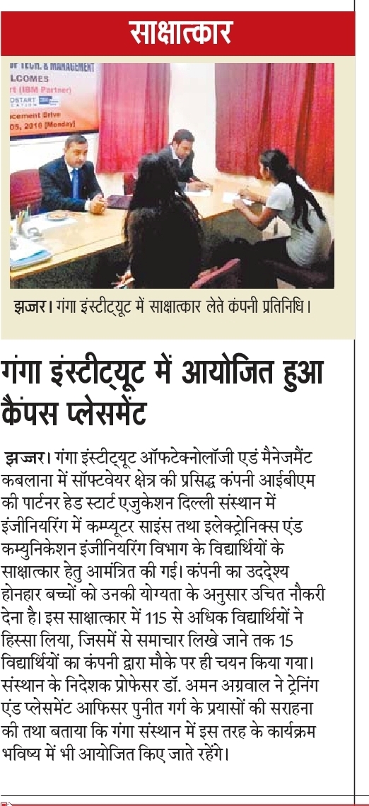 Campus Placement Drive for B.Tech(CSE)/MCA students by Head Start Education, Delhi (IBM Partner) on 5th December, 2016(Monday)