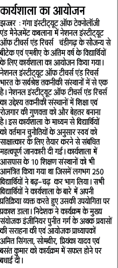 Indo Japan Technical Intern Training and placement Program in collaboration of Ganga Institute of Technology and Management and Institute of Japanese Language and Culture conducted by Mr. Chatterjee from VSSB Studies Abroad Pvt Ltd on 15/01/2020.