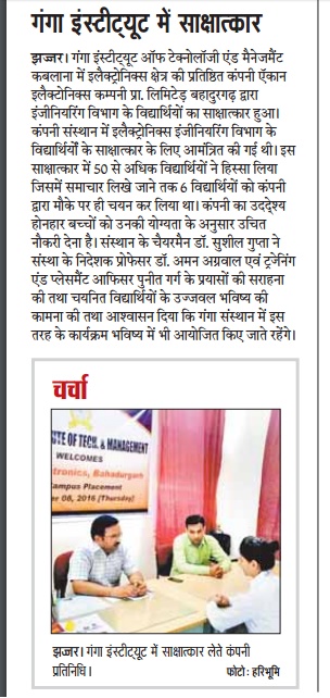 Campus Placement Drive for B.Tech(ECE/EE) students by Max Group of Company, New Delhi on 10th October, 2016