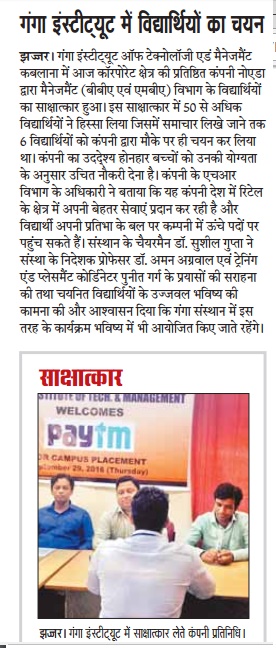 Campus Placement Drive for MBA students by Paytm on September 29, 2016